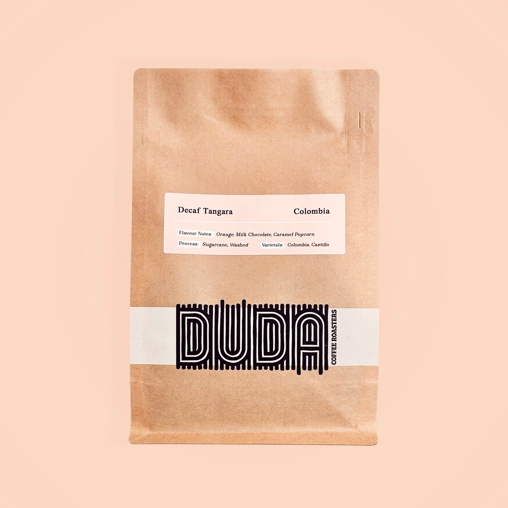 A vibrant Colombian decaf with lots of brightness, smooth milk chocolate, orange and sweet caramel coated popcorn notes.